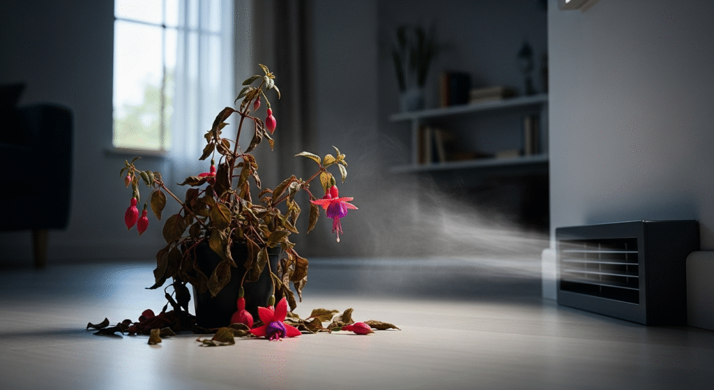 | Air Conditioning (AC) | Cold Shock & Dry Air | Bud blast, leaf drop, slowed growth, brown leaf spots. |