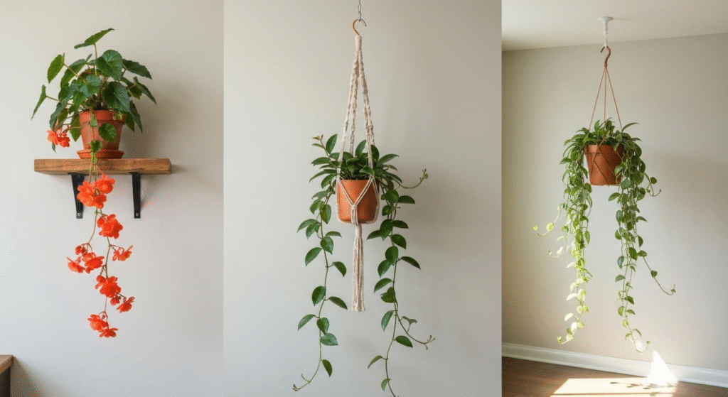 Hanging your plants is the most direct way to add vertical interest. The hardware you choose can either be purely functional or a decorative element in its own right.
