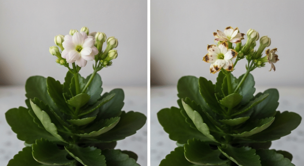 | Color Fading | Gradual fade on the oldest flowers after they have been open for a while. | Sudden fading or wilting on both new and old flowers. |